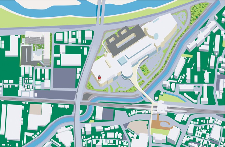 某不動産広告用の駅前周辺イラストレーションです。